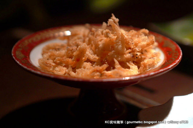 有酒不能無餚,先來幾碟下酒菜。炸櫻花蝦非常酥也甚香口,差不多是來這裡必吃的下酒菜之一。不作小吃,其實加在冷烏冬上吃也可。雞泡魚乾也是指定的下酒菜,鹽燒銀杏用上日本銀杏,香味及口感都出色。